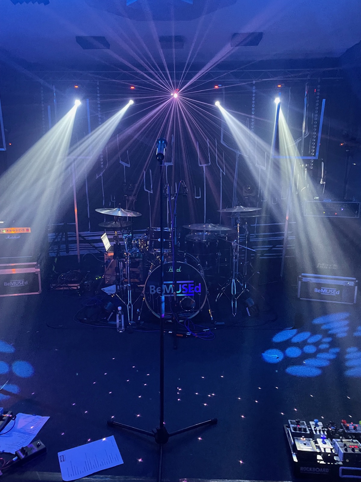 Equipment: 4m rear truss, 2 front T-bar stands, floor lights, and haze machine. All equipment provided.